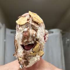 Huncho was surprised by weka66NZ with a big sloppy cream pie to the face
